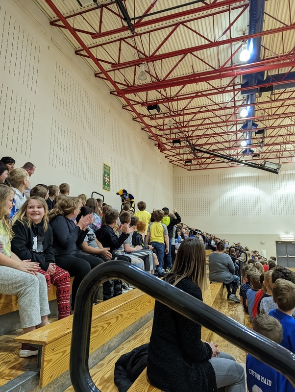 Boomer came to motivate students to do their best on the the ILEARN test. Our students enjoyed all of his tricks and stunts. He was so entertaining! Click here to see Boomer dunking the basketball over some of our students' heads!